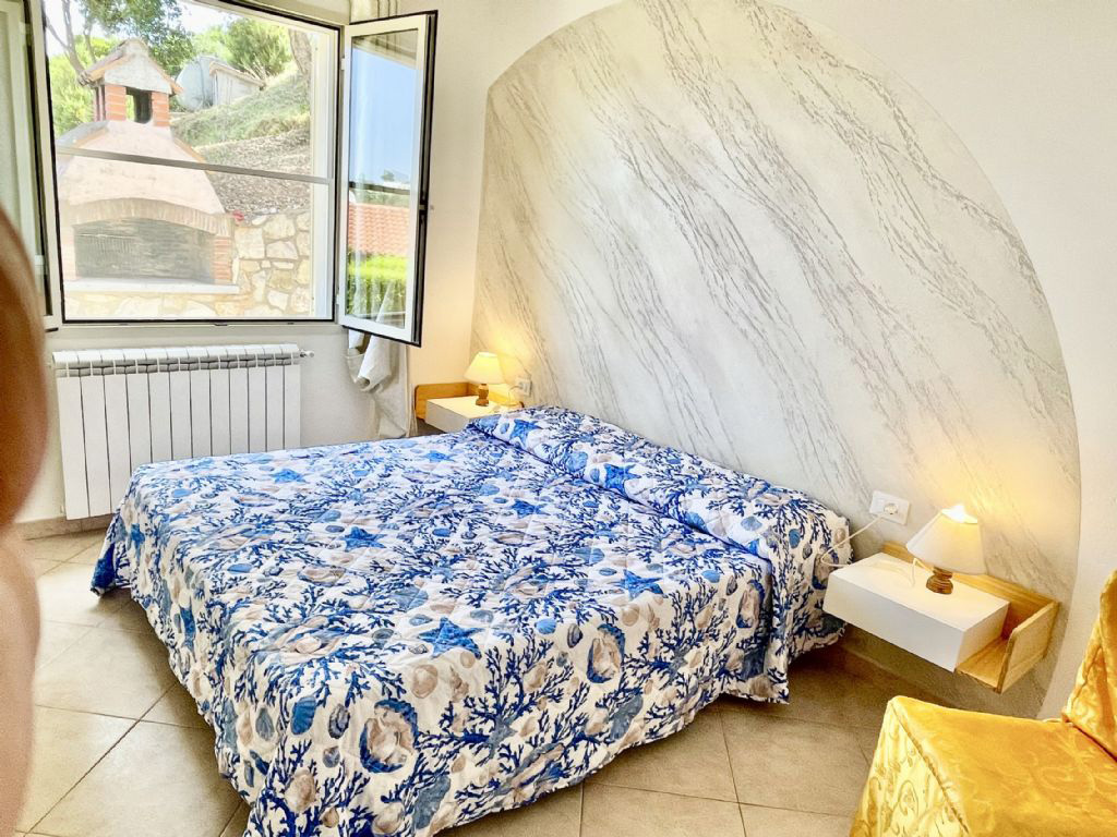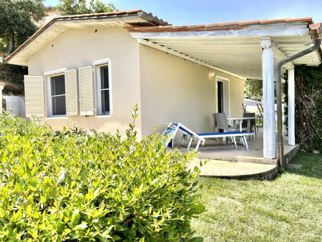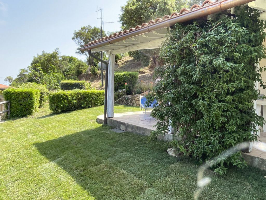 Ein harmonisch in eine Steinmauer eingefügter Barbecue-Kamin steht seitlich des Hauses zur Verfügung. Mediterrane Pflanzen und Sträucher duften auf dem Anwesen, vor der Veranda ist eine traumhafte „Bougainville“ und ein antiker Rosenstrauch. Das Ferienhäuschen bietet einen wunderschönen Meerblick bis Capo Perla.