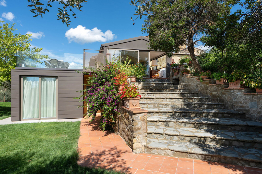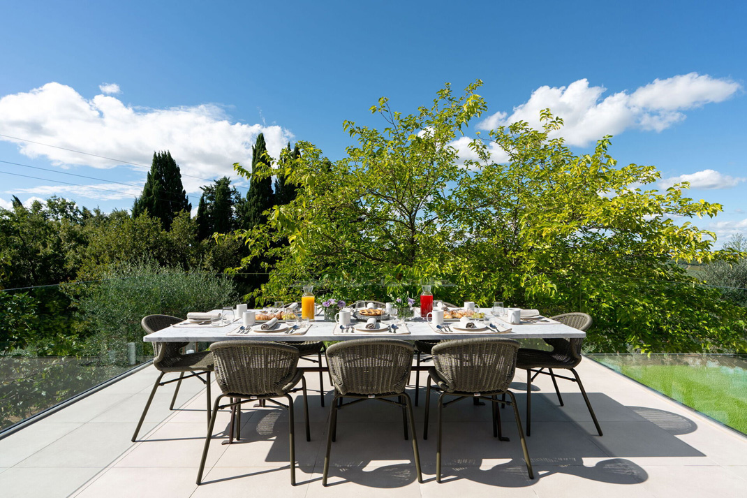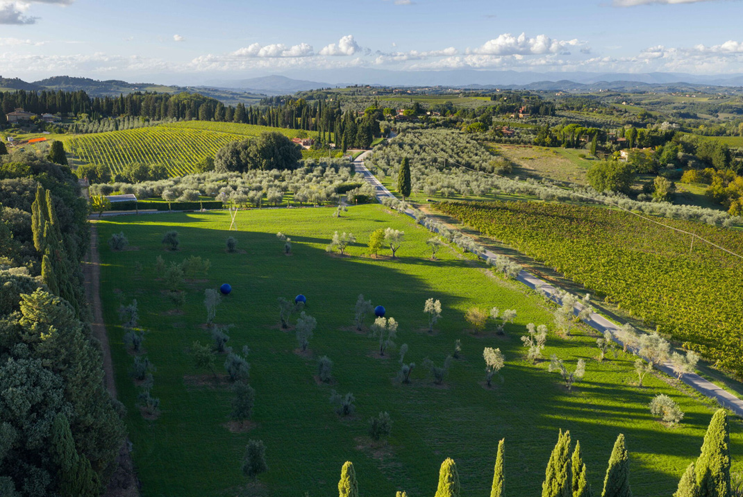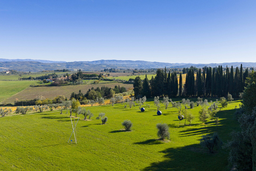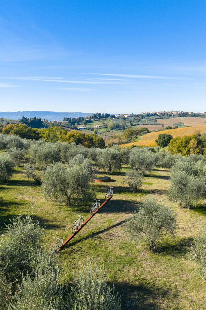 Das schöne Anwesen ist von gepflegten Olivenhainen umgeben. Die Landschaft bietet eine offene Kunstausstellung mit farbigen Skulpturen inmitten der schönen toskanischen Hügel.
